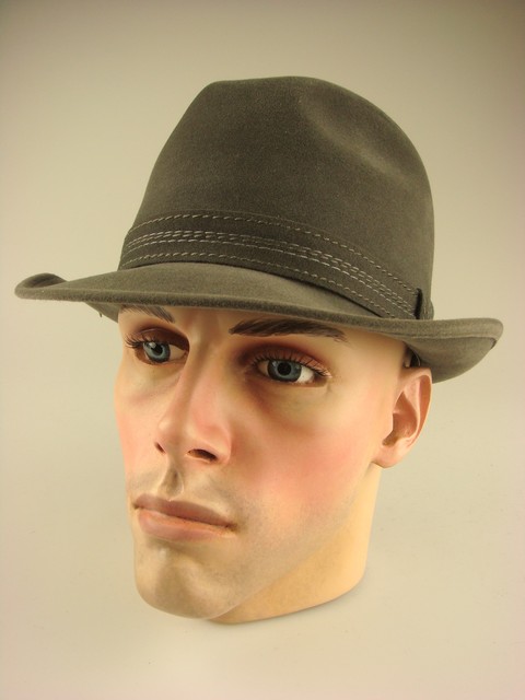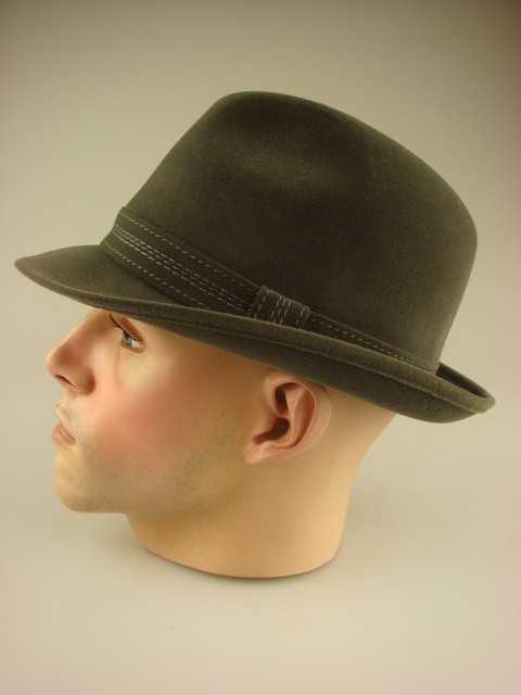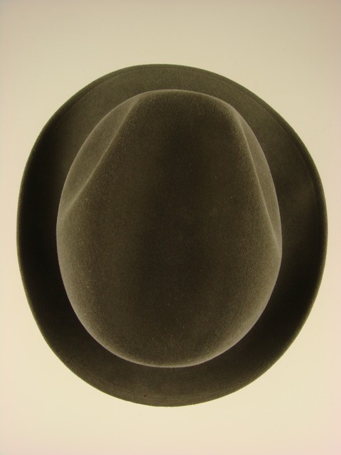 - Deze herenhoed heeft de hoedrand aan de voorkant omlaag en aan de achterkant omhoog.