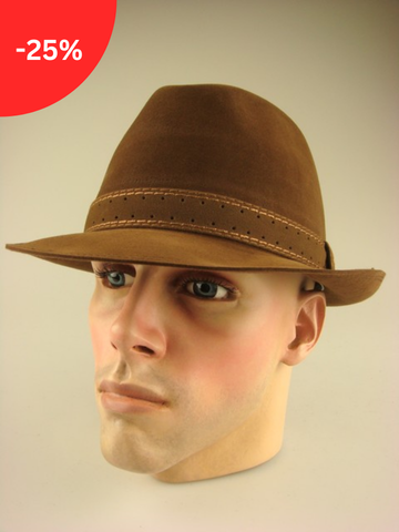 - Deze herenhoed heeft de hoedrand aan de voorkant omlaag en aan de achterkant omhoog.
