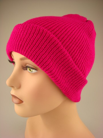 Deze dunne dames muts is enkel gebreid en heeft een omslag van ongeveer 6 cm.