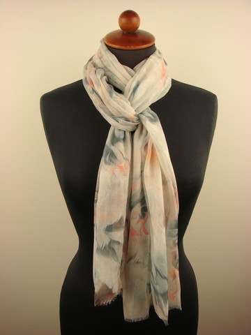 - Deze sjaal is lichtgrijs met zalm van kleur .