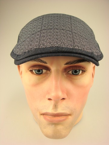 Hij heeft een donkerblauwe kleur met donkerblauwe en lichtgrijze ruiten bovenop.